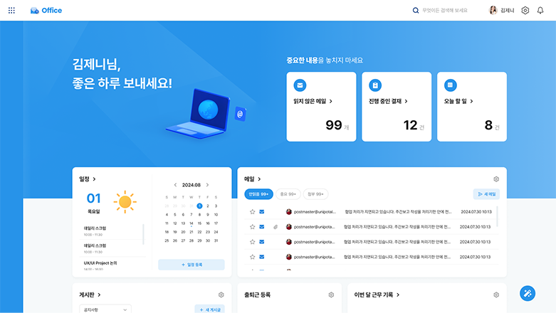 메일, 전자결재, 협업 등 직원들 간의 정보 공유 향상 및 불필요한 커뮤니케이션 최소화