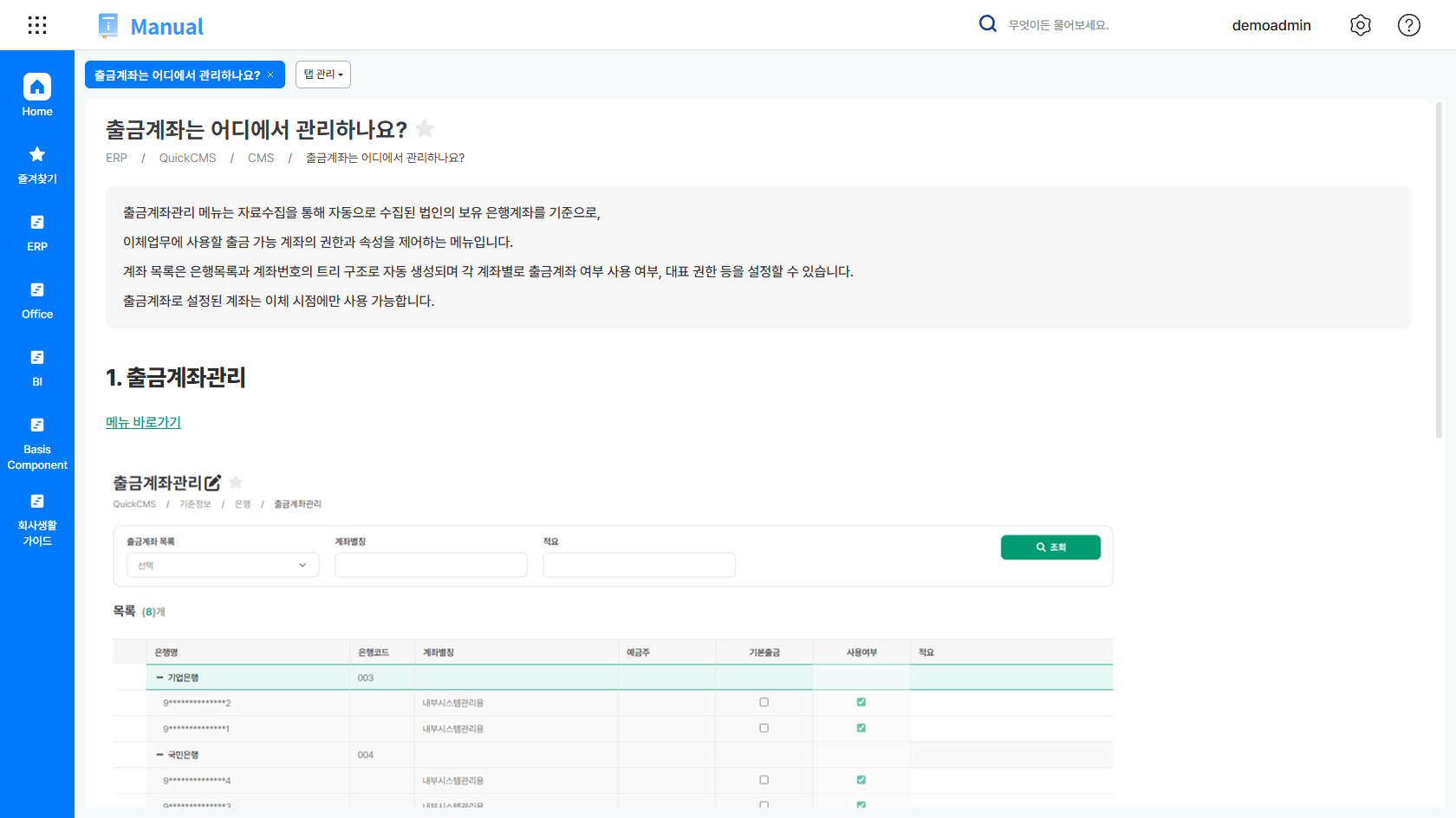 또한, 일부 주요 화면에서는 해당 기능과 연계된 매뉴얼 링크가 함께 제공되어, 기능 사용 중에도 쉽게 매뉴얼을 확인할 수 있습니다.
